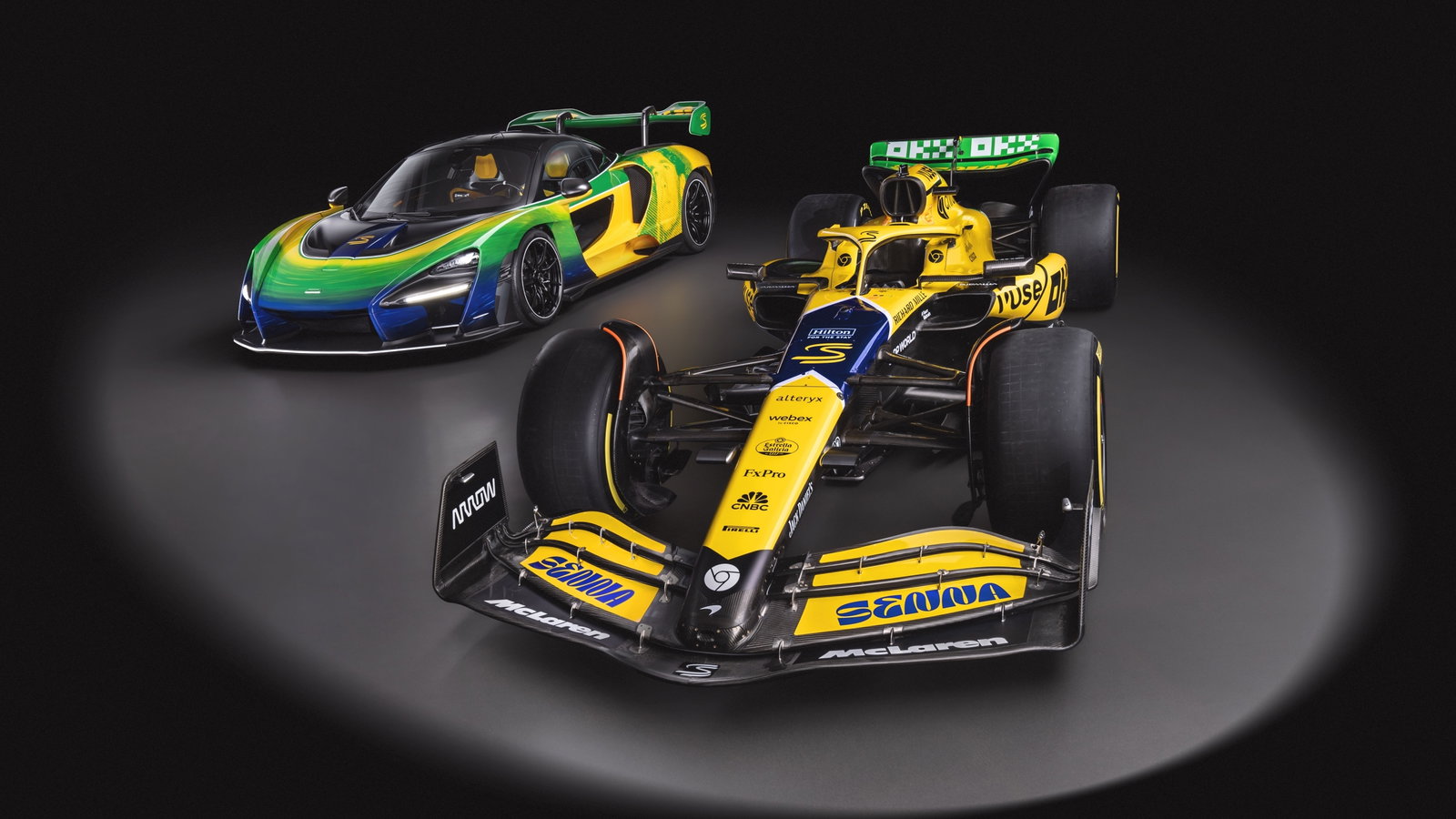 Lando Norris and Oscar Piastri’s MCL38s will wear the one-off livery that’s heavily inspired by the flag of Senna’s native Brazil, featuring a unique yellow, green and blue look – a far cry from the team’s usual papaya.